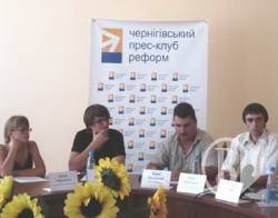 С журналистами встретились Павел Пущенко (Образовательный центр “Инициатива”), Юрий Вдовенко (Полесский фонд международных и региональных исследований), Юрий Паперный (Черниговский монитор), Ирина Черенько (Общественная организация “Апельсин”) и Ирина Мельник (Черниговский пресс-клуб реформ).