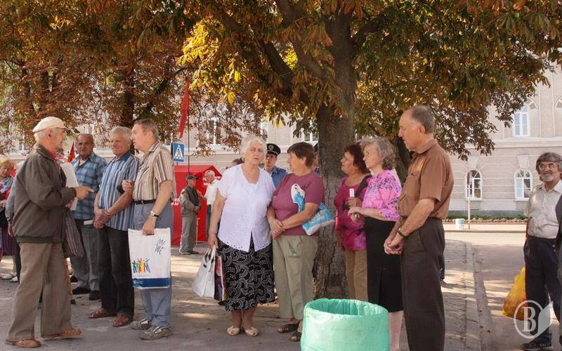 Все ж підтягнулось з десяток товаришів. У переважній більшості це були люди пенсійного віку. Через кілька хвилин пікетників стало трохи більше, але їх віковий і соціальний "портрет" не змінився. Молодь проходить мимо.