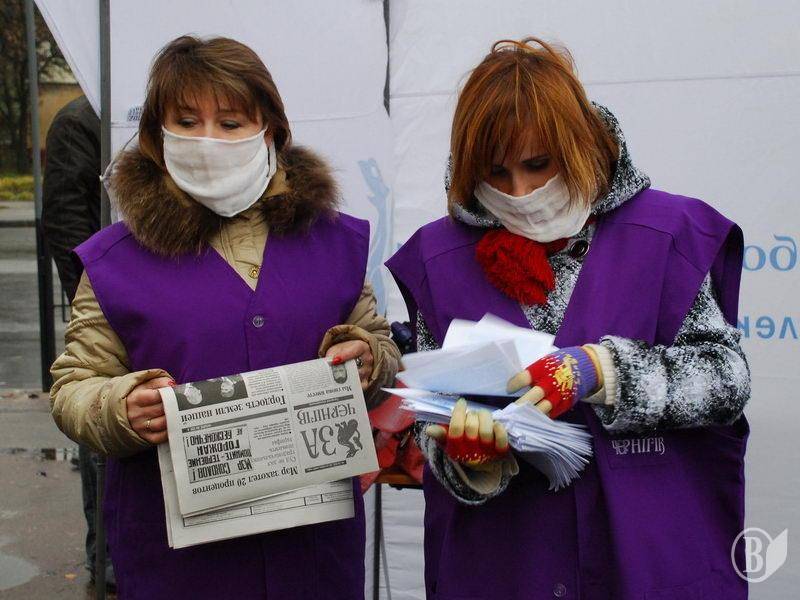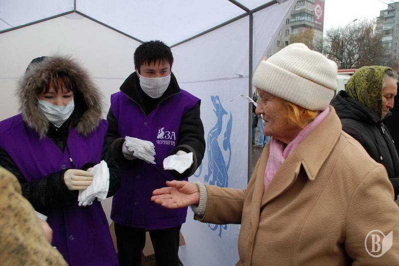 Уже с утра субботы около центрального рынка разместились белые палатки с логотипами «За Чернигов», молодые девушки и ребята из которых раздавали прохожим брошурки «За Чернигов» с вами! Боремся с гриппом и паникой вместе!». Люди в достаточно большом количестве подходили к палаткам, разговаривали с активистами общественной организации, делились наболевшим и слушали советы, как уберечься от гриппа и не поддаться панике.