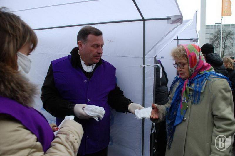 В субботу президент общественной организации «За Чернигов» Алексей Савченко и депутат Верховной Рады от Партии регионов Павел Климец помогали черниговцам уберечься от опасной простудной инфекции.