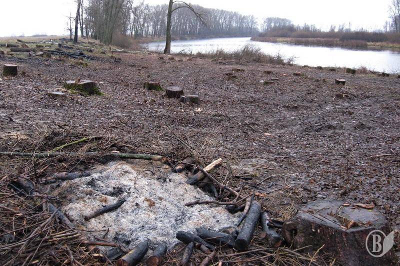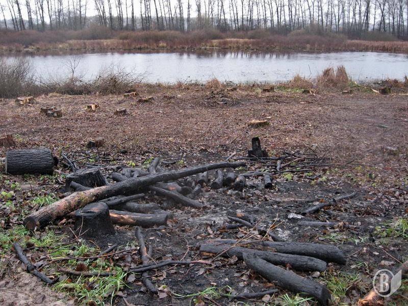 В природоохранной зоне на берегу озера Магистрацкое (левобережье Десны) проводится вырубка деревьев. На площади в несколько сотен квадратных метров «под корень» срубаны все деревья и кусты.