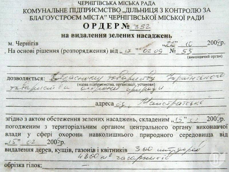 8.09.2009 В Чернигове вырублен очередной зелёный островок