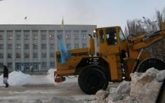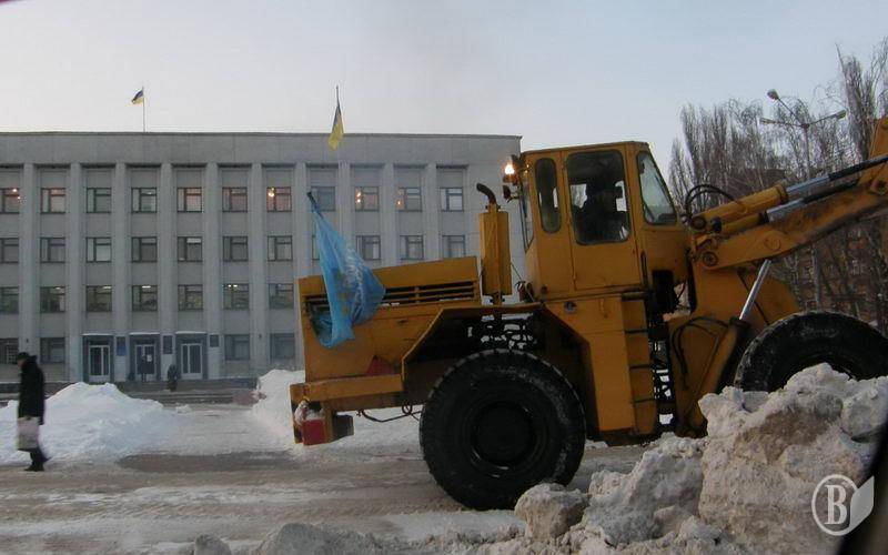По Чернигову «рассекает» трактор с флагом Партии регионов Украины. Этот трактор и раньше убирал снег в Чернигове, но теперь – под флагом.