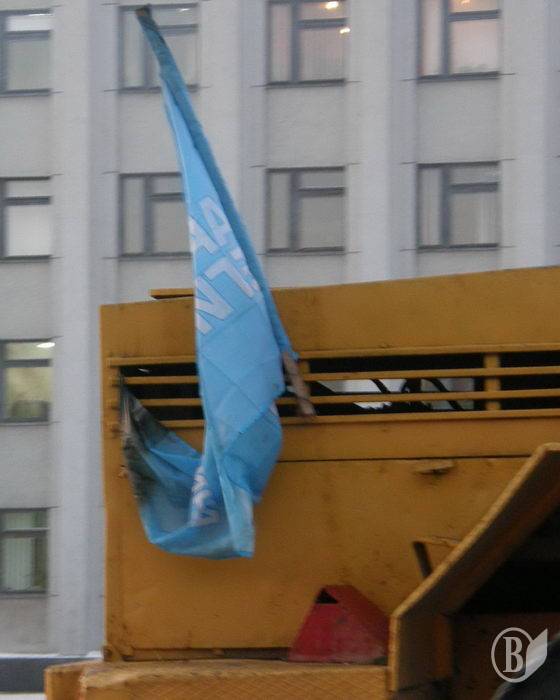 Впрочем, появлению флага на тракторе есть определенные аналогии. Весной в 2009 году работники ЖКХ выходили на общегородской субботник под флагами «Единого центра». Вадим Антошин по совместительству (Вы только подумайте, какой невероятно работящий человек!) – председатель Деснянской районной организации Единого Центра. По крайней мере, был таким на то время.