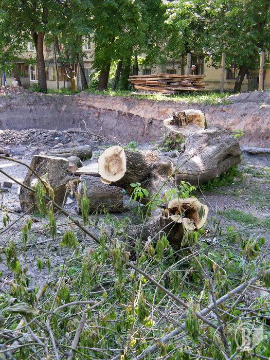 Так теперь выглядит зеленый когда-то двор домов по пр.Мира, 17 и 17-А в историческом центре Чернигова.