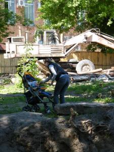 Сегодня, в субботу 22 мая многострадальные жители домов по пр.Мира 17 и 17А вышли на субботник по благоустройству собственного двора. Точнее, той его части, которая осталась после варварских действий застройщиков-«уплотнителей».