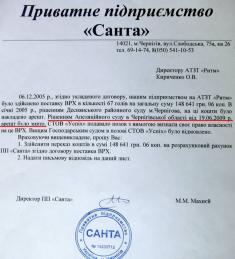 3. Факти про невідповідність даних в закупівельних актах це суцільна вигадка АТЗТ «Ритм». Всі документи оформлено згідно чинного законодавства. На кожну голову було оформлено довідку з сільської ради, ветерінарну довідку, закупівельний акт. Все це було передано на АТЗТ "Ритм", де і було наплутано з документами. Вони (Ритм) не взяли собі за труд порівняти прізвище в ветеринарних довідках, а відрахували перших 67. Тому саме на АТЗТ "Ритм", а не у ПП "Санта" бардак в документах. Ствердження про невідповідність в документах, це інформація, котру розповсюджує АТЗТ "Ритм". Ця інформація висмоктана з пальця. А то що дійсно було, це те що працівники АТЗТ" Ритм" їздили по с.Петрушин, знаходили літніх людей, задурювали голову, та вмовляли написати заяву, що ніяких корів вони в очі не бачили. Декілька людей написали. Селян обдурити дуже легко. Якщо б мала місце підробка документів, я давно б знаходився за гратами. За п‘ять років я провів дуже багато часу по викликах як до правоохоронних, так і державних органів. Прокуратура, відділ боротьби з економічної злочинністю, держадміністрація. І все це помножуйте на три. Бо спочатку в районі, потім в місті а потім в області.
