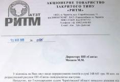 Ще раз наголошую, кожне слово я можу підтвердити документально. Я впевнений, АТЗТ «Ритм» просто використовує усі хитрощі тільки для того, щоб не віддавати гроші. Кожній здравомислячій людині ситуація зрозуміла. АТЗТ «Ритм» повинен віддати гроші ПП «Санта». Далі ці гроші повинні потрапити в с.Петрушин. А ми вже тут з усіма необхідними органами розберемось чиї це гроші. А то в останній час розвелось дуже багато «добродіїв», котрі ділять чужі гроші. Питається, з якого лиха АТЗТ «Ритм» лізе до справ в с.Петрушин? Справа АТЗТ «Ритм» проста, отримали худобу - розрахуйтесь. Ну і на залишок, прошу на майбутнє автора статті спиратися тільки на факти, а не на чиїсь домисли.