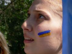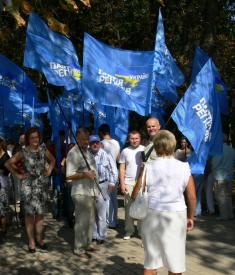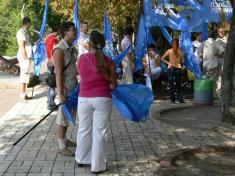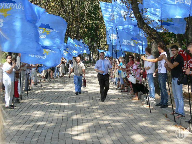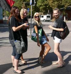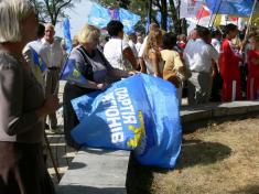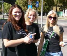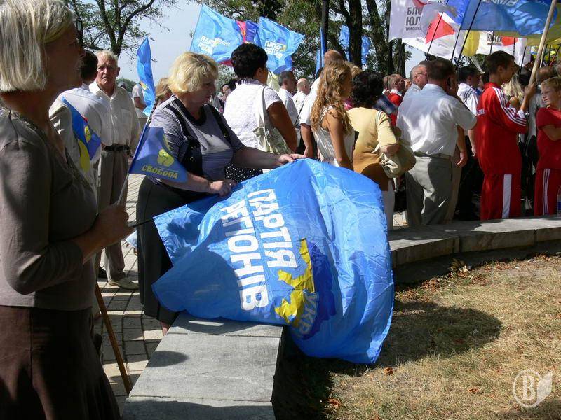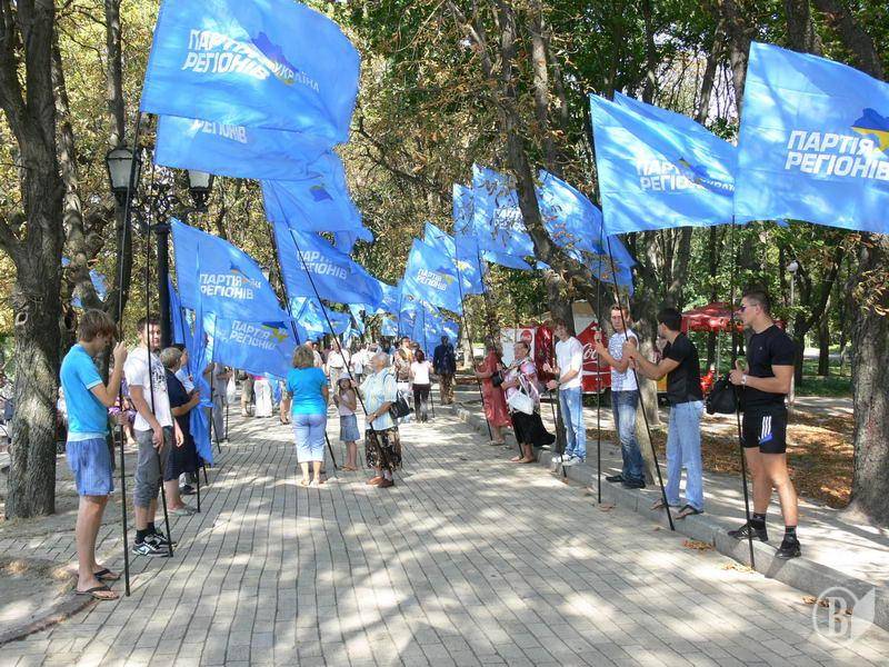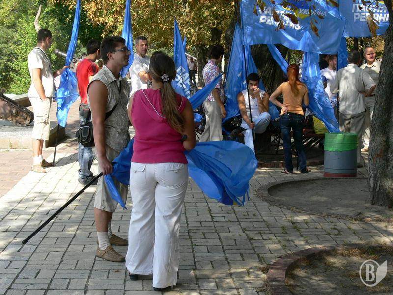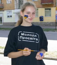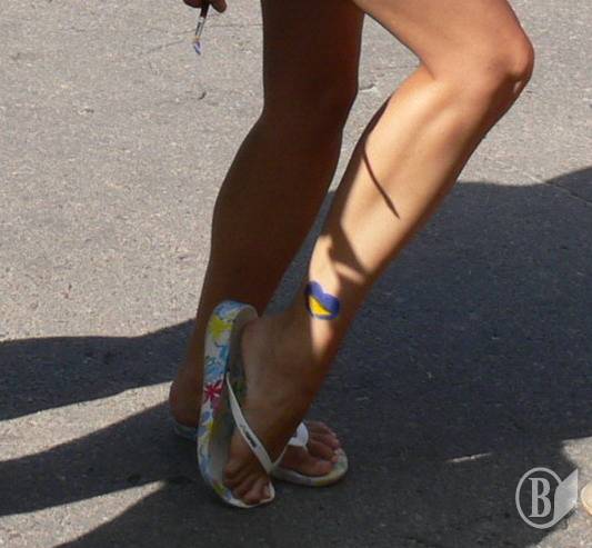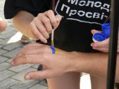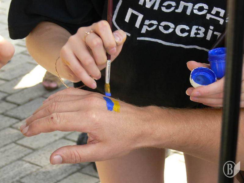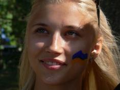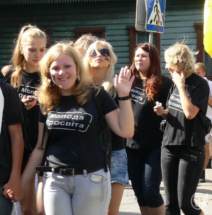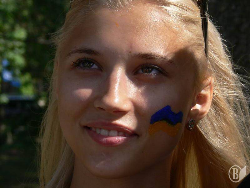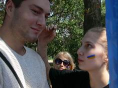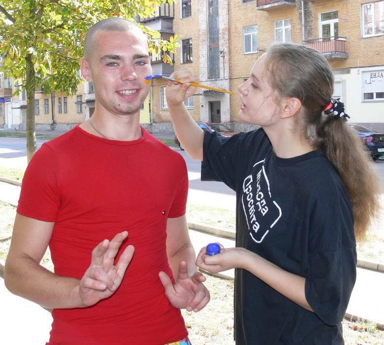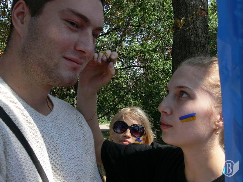Проте більшість хлопців-прапороносців з Партії Регіонів погоджувалася на пропозицію чарівних дівчат з "Молодої Просвіти" намалювати їм фарбою прапорець на щоці або на руці.