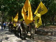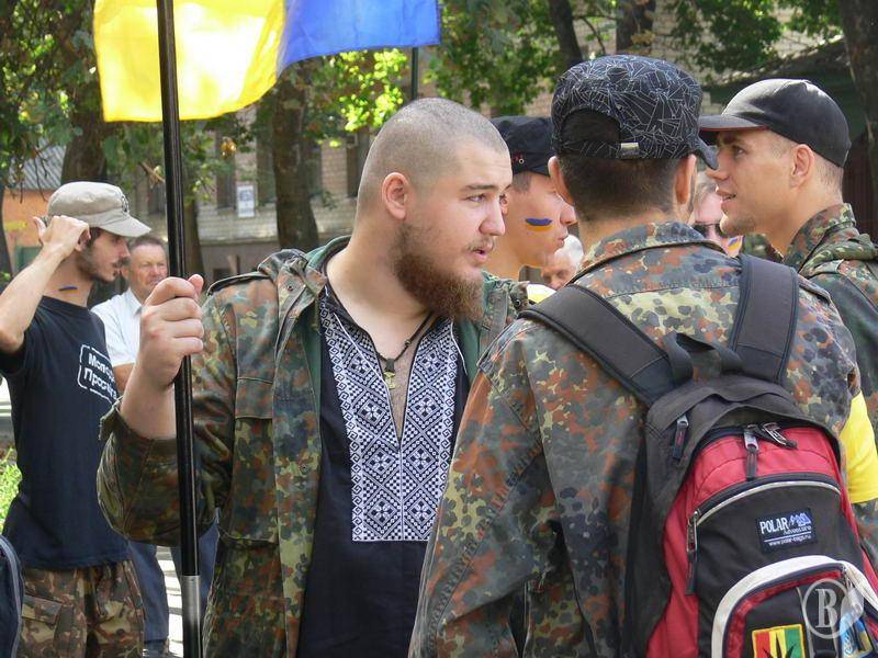 Між представниками патріотичних сил і активними поодинокими прапороносцями з Партії Регіонів, які були налякані "маршем фашистів", виникла коротка словесна дискусія.