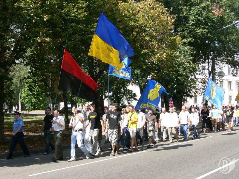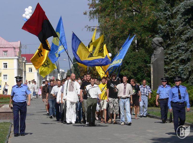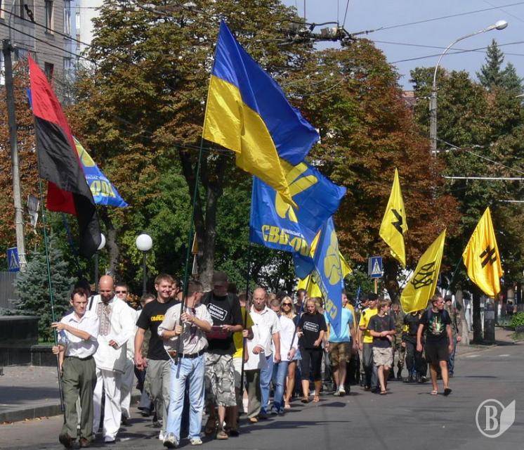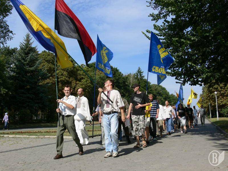 ВО "Свобода", КУН, ЧМГО "Молода Просвіта", "Патріот України", клуб екстремального відпочинку "SEMARGL", ВО"Тризуб" ім. С.Бандери пройшли на День Незалежності вулицями Чернігова, алеєю Героїв і Валом до пам*ятника гетьману Мазепі, де відбулося віче «Право незалежності».