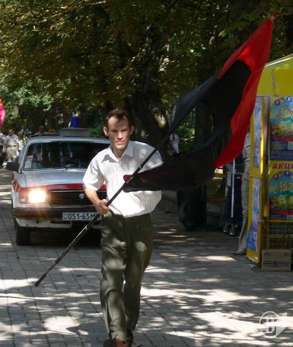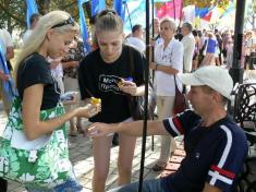 23.08.2010 В Чернігові до Дня Прапора роздавали прапорці. ФОТО