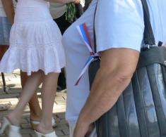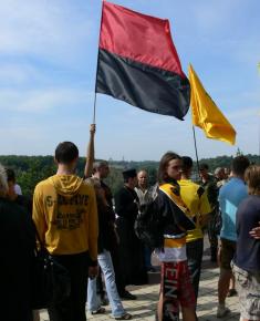 Патріотичний табір зацікавило призначення і походження кількох червоно-синьо-білих стрічок на представниках табору "блакитного". Після не зовсім вдалих пояснень про "дружбу" носії стрічок чомусь їх ховали і залишали захід.