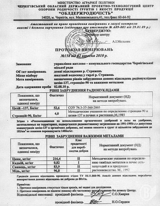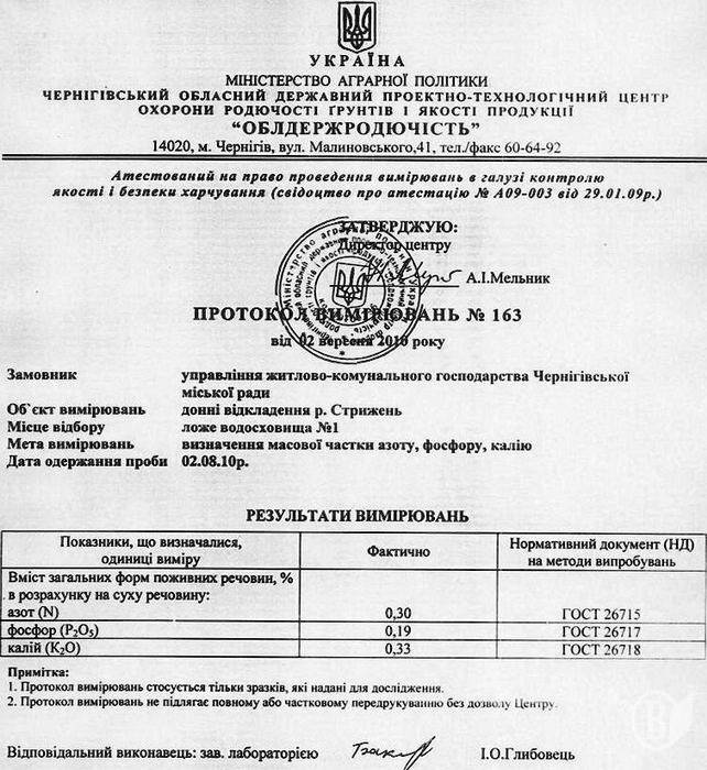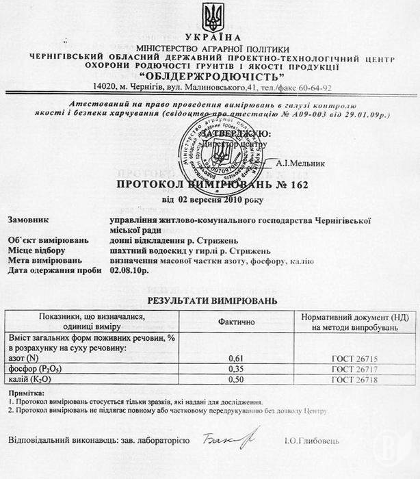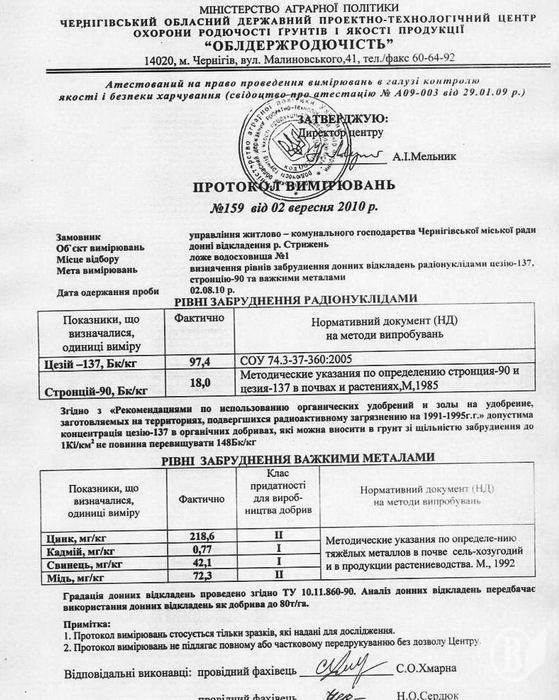 Экспертизы провели специалисты Черниговского областного государственного проектно-технологического центра охраны плодородия почв и качества продуктов "Облгосродючесть".