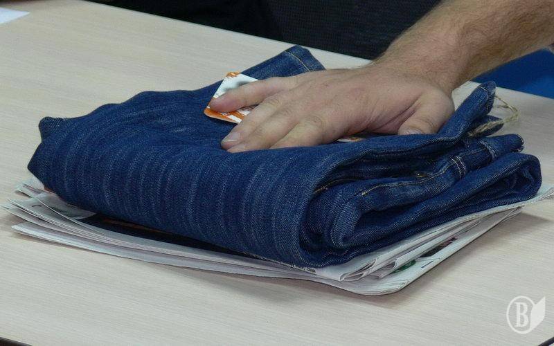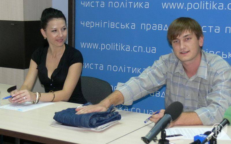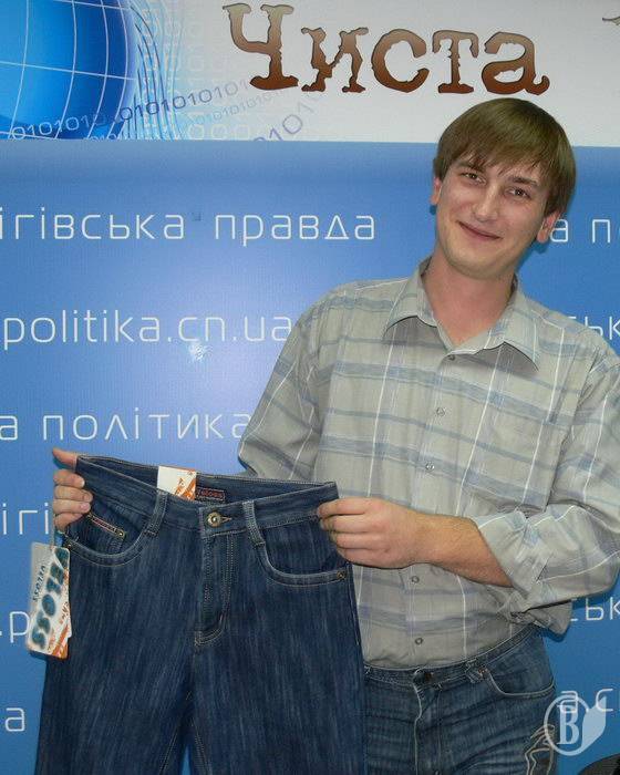 Сьогодні у Чернігові на прес-конференції в експертному клубі «Чиста політика» представник освітнього центру «Ініціатива» володимир Андрейченко продемонстрував своєрідний приз – джинси.