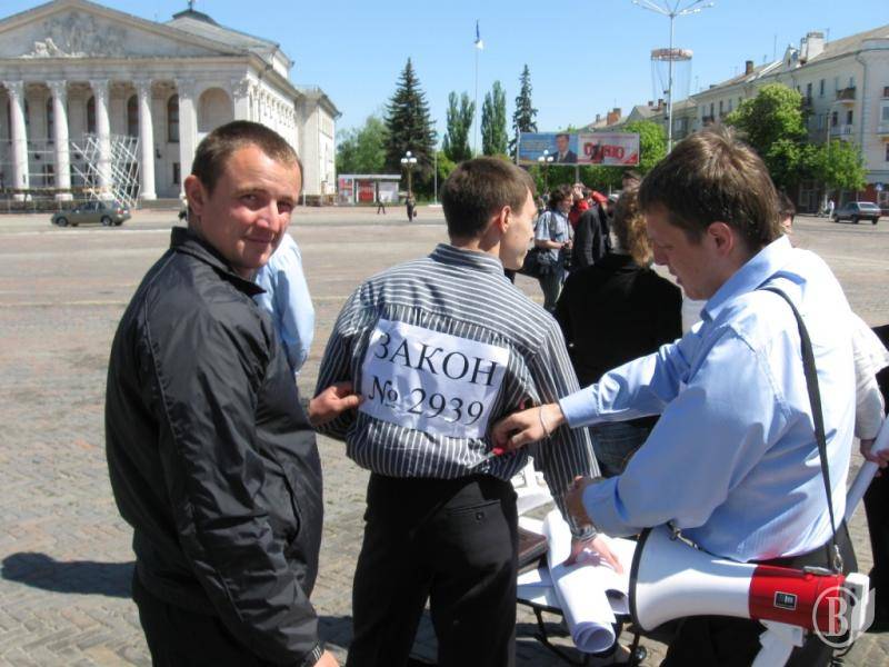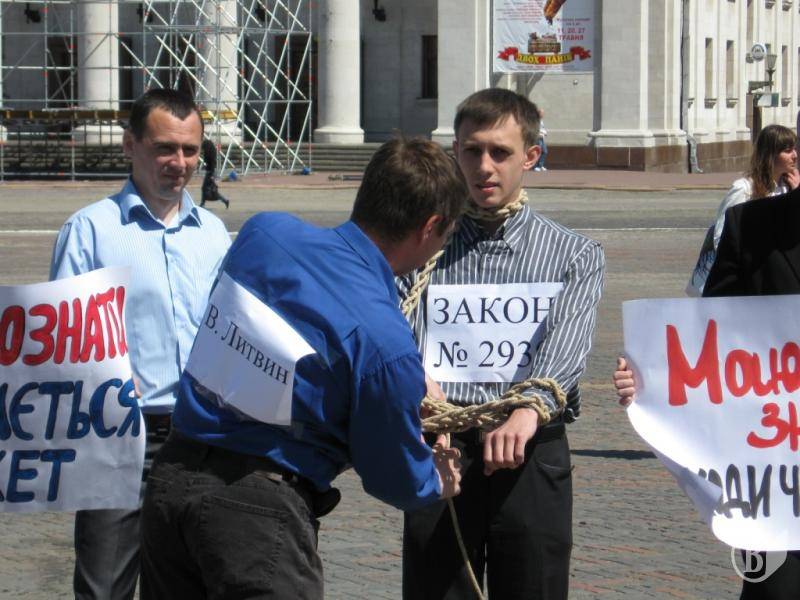 ЧОО ВМГО «Демократичний Альянс» і просто активні громадяни міста наочно показали, як В.Литвин фактично «зв’язує Закон по рукам». Метою заходу є висловлення громадського невдоволення і незгоди з можливим внесенням змін до Закону «Про доступ до публічної інформації».