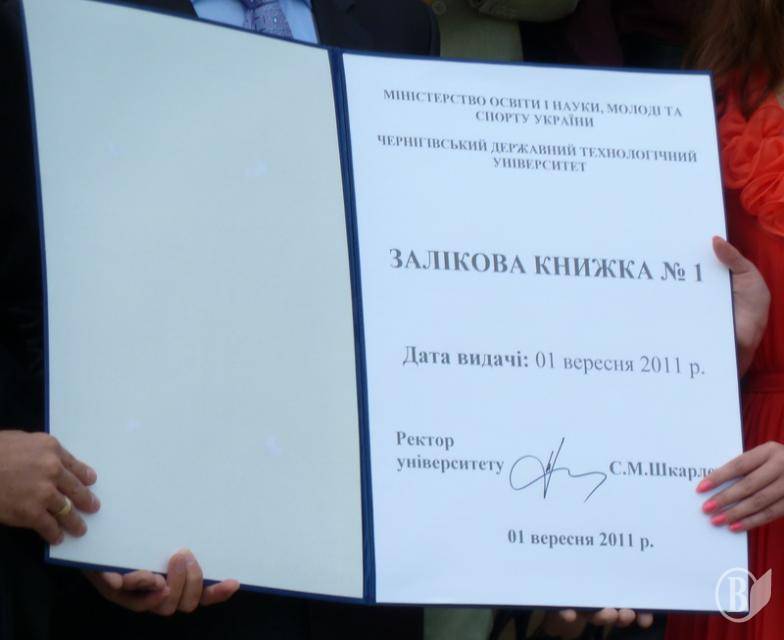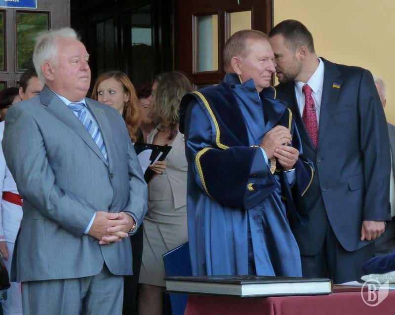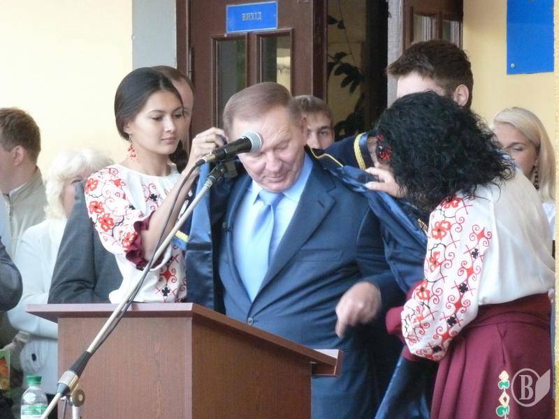 Після нагороджень і вітань відбулася урочиста церемонія вручення залікової книжки. Леонід Кучма оглянув експозицію майстрів у університету і зустрівся зі студентами.