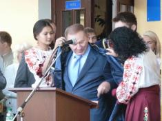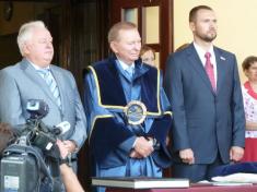 У свою чергу ректор технологічного університету Сергій Шкарлет вручив високому гостю атестат і атрибут почесного професора.