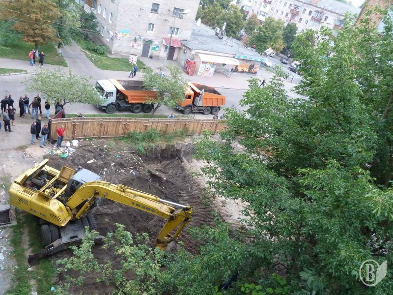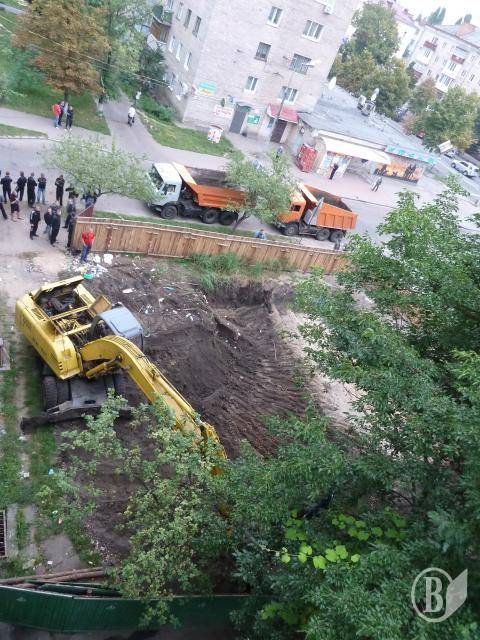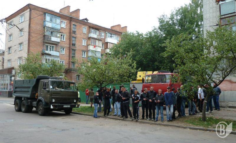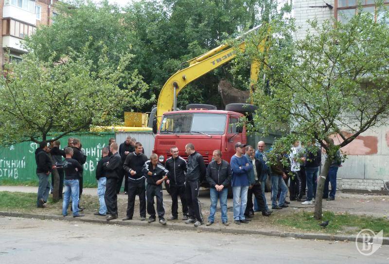 Спроба жителів цього будинку не пустити сьогодні зранку будівельну техніку на будмайданчик закінчилася справжнім «мордобоєм», у якому з боку забудовника взяли участь молодики спортивної статури.