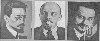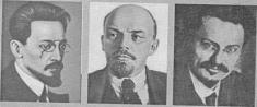 Янкель Мовшевич Свердлов (Розенфельд), Владимир Ильич Ленин (Ульянов-Бланк), Лейба Давидович Троцкий (Бронштейн-Животовский)