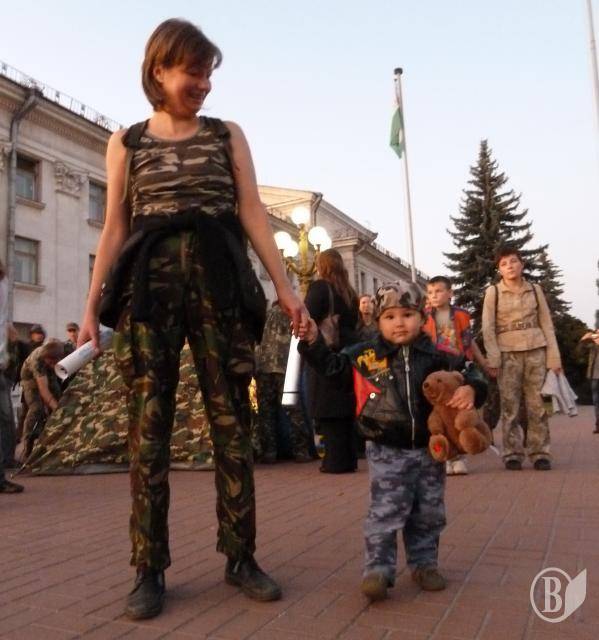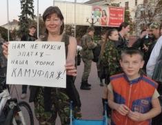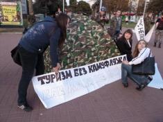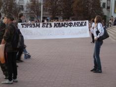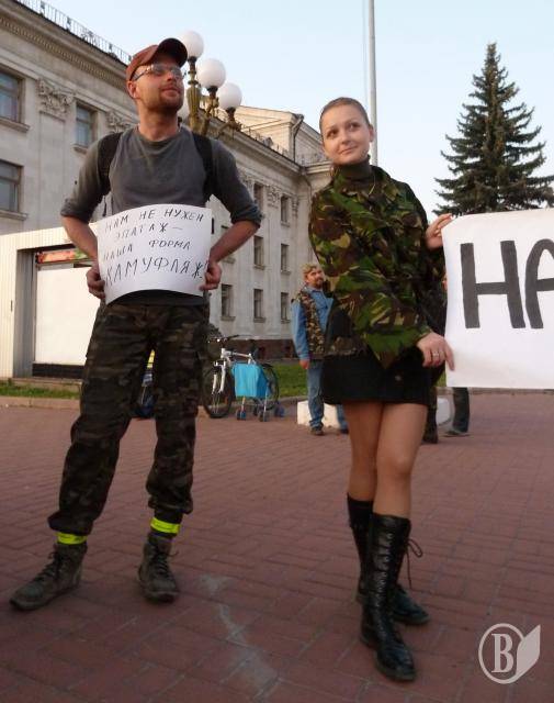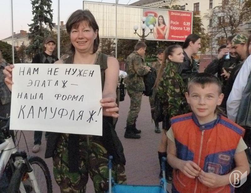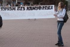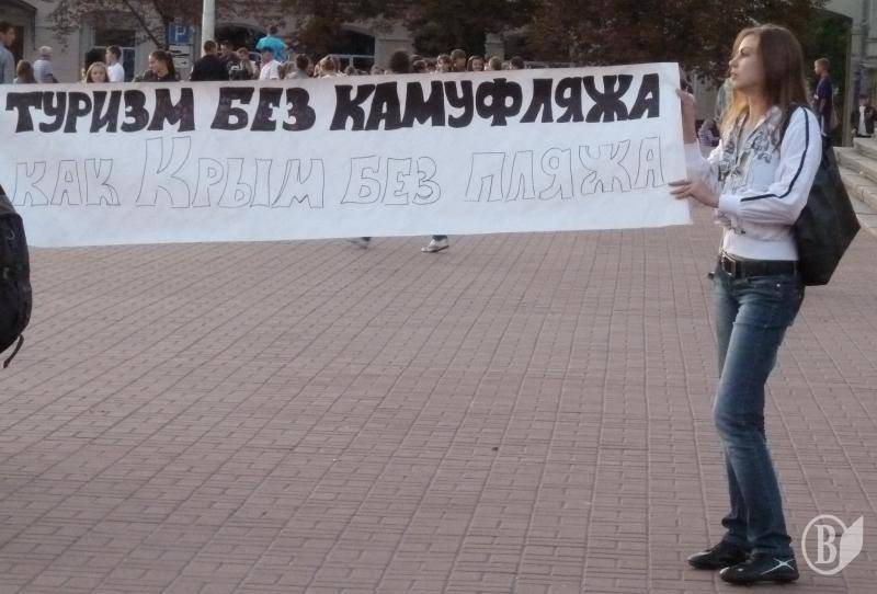 "Туризм без КАМУФЛЯЖА как Крым без пляжа", "Нам не нужен эпатаж, наша форма - камуфляж", "Нас не потрібно роздягати", - такими були гасла активної молоді Чернігова під час акції, яка не мала на меті висловлювати підтримку жодній політичній силі чи організації.