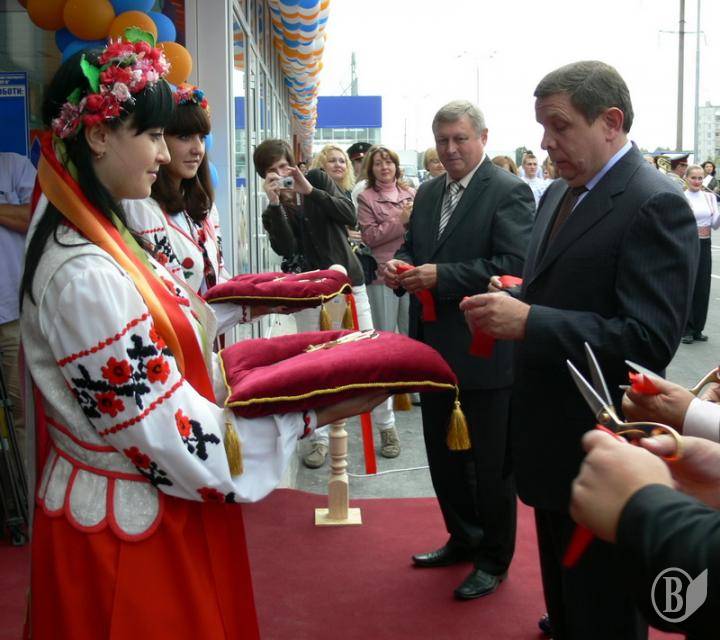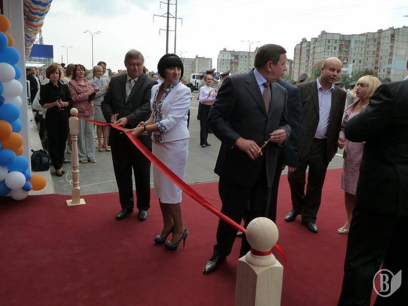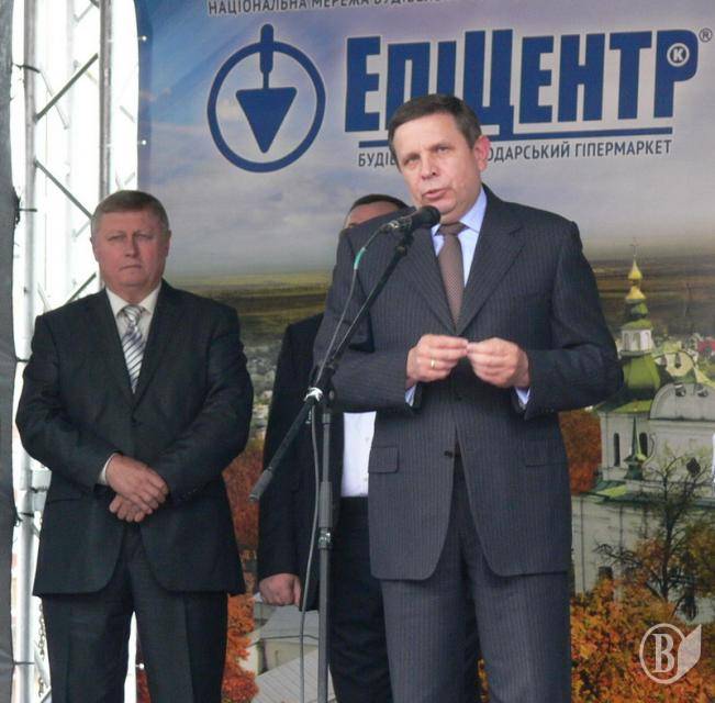 Червону стрічку перерізали засновник компанії "Епіцентр", секретар Київради Галина Герега, голова Чернігівської облдержадміністрації Володимир Хоменко і голова Чернігівської обласної ради Анатолій Мельник.
