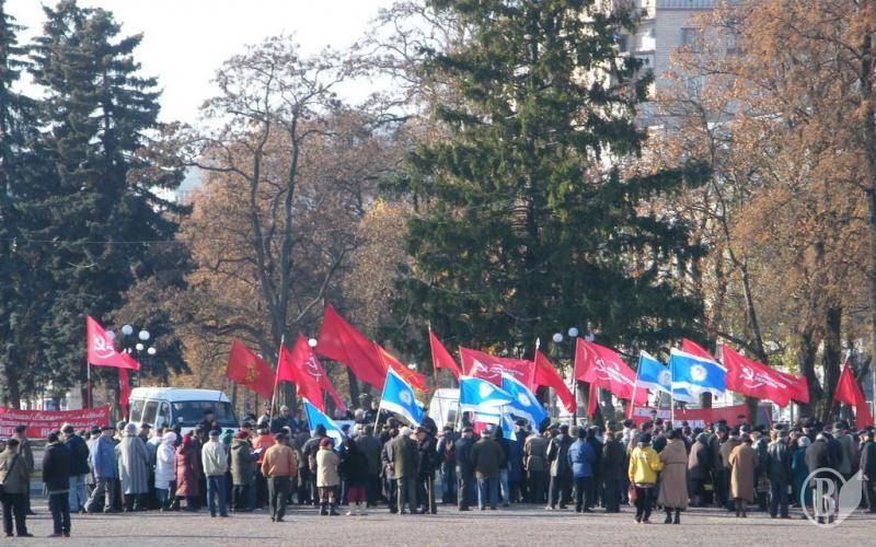 Чернігівські комуністи 7 листопада традиційно вийшли на демонстрацію до річниці жовтневого перевороту, скоєного у Петрограді в 1917 році. Ще б пак – традиція ж міцна, майже сторічна.