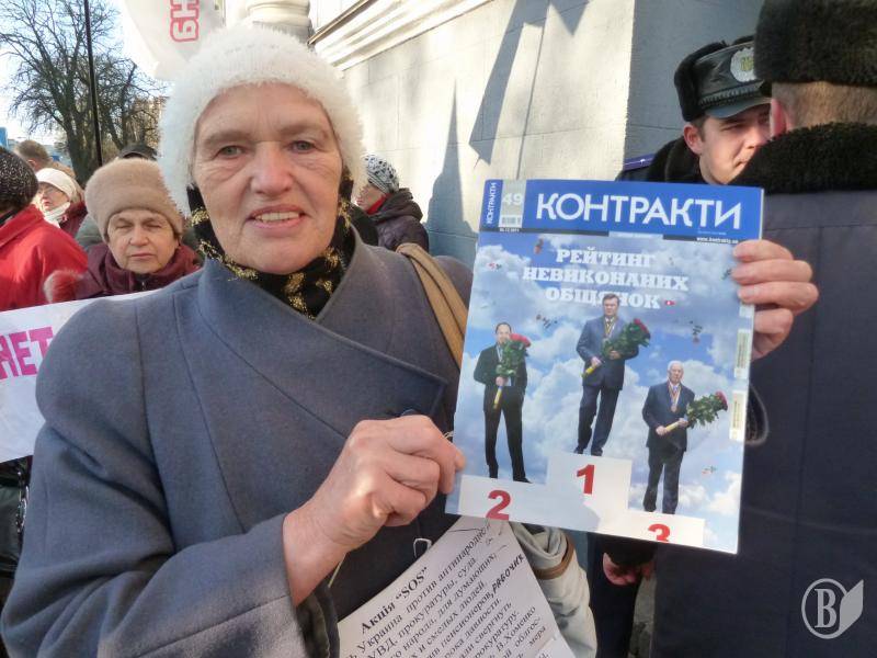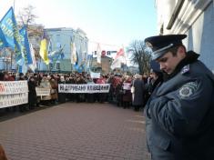 Разом з підприємцями протестували "свободівці", представники "Автономного спротиву", "Батьківщини" і КПУ.