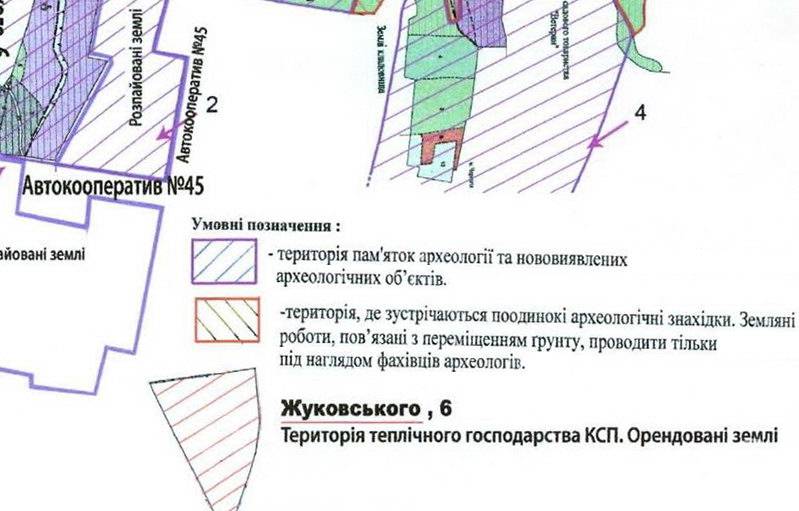 На карті чітко зрозуміло, що територія вул. Жуковського, 6 – це «територія пам’яток археології та нововиявлених археологічних об’єктів».