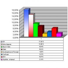 По поводу бандеровцев из Свободы, вряд ли это будет "феномен". то что у них нет больших финансовых потоков вопрос спорный, но если это так, тогда в этом и минус этого политического проекта. я думаю, что скорее всего коммунисту, который явился здесь под ником Алекс, не повезет с прогнозом, так как Свобода уже имеет твердых 5 процентов по результатам местных выборов. но все равно, лидером станет ПР... тут без сомнений. пусть фальсификации, обманы, подкуп но это неизбежно. объединенная "АппАзиция" не способно действительно объединиться, так как очень много амбиций у человека, которого Ляшко назвал "Сеня-деньги-вперед"...