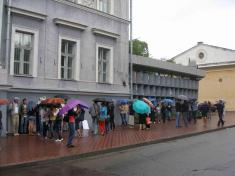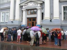 Рівно о 9.30, як попередньо обіцялося інтернеті, з’явилася «масовка». Це люди молоді і не дуже, що спрагло дивилися на потужні двері. Зайти за які їх активно агітували помічники депутатів.