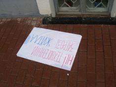 За що стояла молодь, незрозуміло. Жодних вимог не висувала. Жінка, що хотіла з плакатом, не знала, що на ньому написано. Пізніше взагалі покинула його на асфальті.