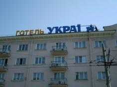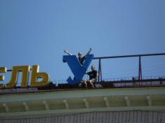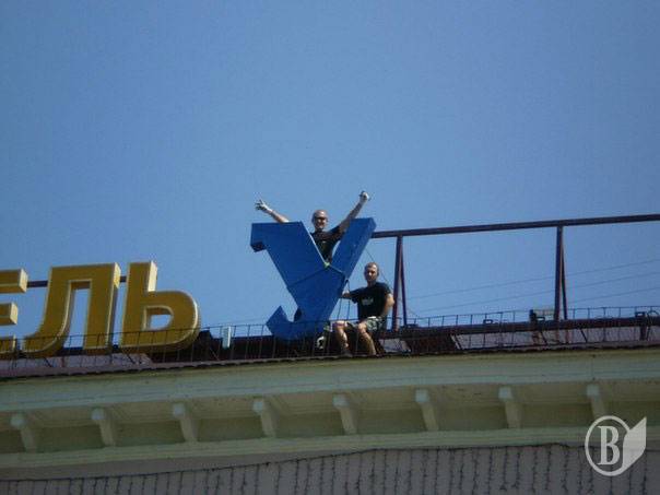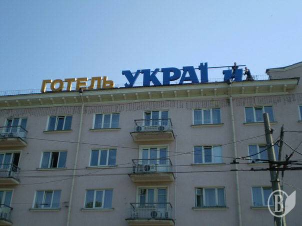 Пару тижнів тому верхолази-екстремали зняли великі літери на даху готелю «Україна». А це найпопулярніше місце зупинки транспорту міста та зустрічей.