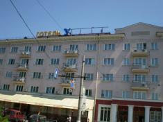 Молоді монтажники-висотники відкрутили і спустили вниз «Готель Україна». Йому тепер загрожує реконструкція.
