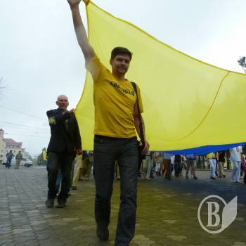 Свободівці з нагоди свята пошили прапор 6х9 метрів, які несли учасники маршу.