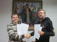 Керівники обласних організацій ВУТ "Просвіта" імені Т.Шевченка Василь Чепурний та політичної партії "Демократичний Альянс" Ігор Андрійченко підписали Угоду про співробітництво.