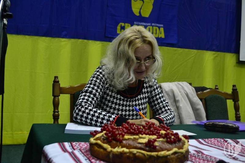 Презентуючи ж книгу «Мовна норма: знищення, пошук, віднова», мовознавець розповіла, що до написання цієї праці її спонукала безграмотність депутатів. Ще ж більше, за словами націоналістки, її шокувало побачене і почуте у вищому законодавчому органі державної влади – Верховній Раді. Усі присутні могли придбати книги авторки, а після презентації – отримати автограф на згадку.