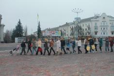 До флеш-мобу приєдналися волонтери Чернігівського обласного педагогічного ліцею, методисти відділу інклюзивного навчання Обласного інституту післядипломної педагогічної освіти ім. К.Д. Ушинського, представники бізнес-структур, що заходяться поряд з площею та інші небайдужі громадяни нашого міста.