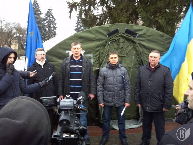 Сьогодні у Чернігові випав перший сніг і біля наметів Євромайдану обласний штаб національного спротиву провів брифінг.