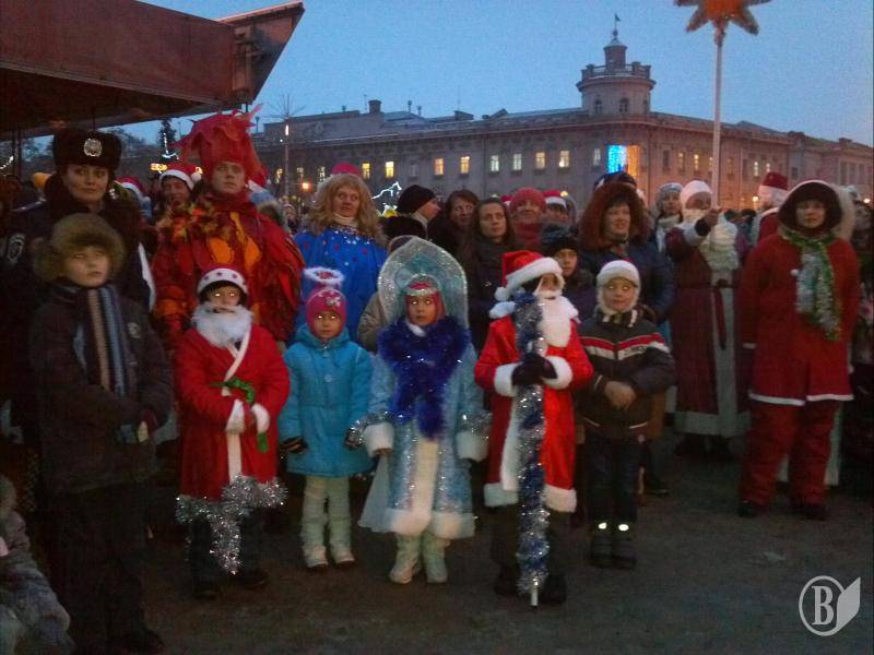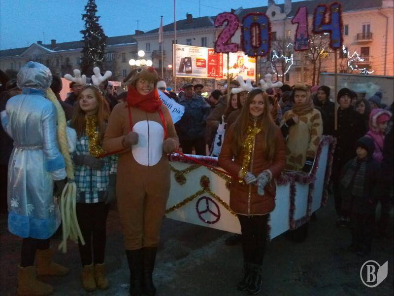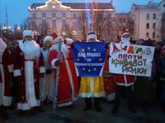 Черниговские Деды Морозы в Чернигове держали в руках плакаты «Дед Мороз против кровавой йолки» и «Дед Мороз за евроинтеграцию».