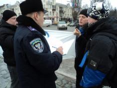 - Та варто зазначити, що ще за п’ять хвилин до початку акції активістів вже чекали правоохоронці в цивільному і по формі. А вже через п’ять-десять хвилин після початку заходу приїхало 3 машини міліції. І тільки через півгодини, після команди «згори» співробітники міліції нарешті зрозуміли, яку саме статтю було порушено і на кого необхідно скласти протокол. В результаті чого було складено адміністративний протокол по статті 185-1 КУпаП на Андрійченка Ігоря Володимировича за порушення правил мирних зібрань, який буде оскаржено в суді, повідомляє Прес-служба Чернігівської обласної організації ДемАльянсу.