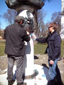 7.04.2014 Кремлівські грантожери вночі "прикрашають" пам'ятки символікою генерала-зрадника Власова