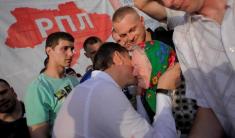 Зустрічали лідера Радикальної партії гучними оплесками. На відміну від політиків, які вже приїздили у Чернігів, Ляшко не ховався від виборців на високій сцені. Навпаки: стояв близько до людей, і кожен, хто хотів, міг підійти, сфотографуватися, взяти автограф, навіть обняти і поцілувати. У Чернігові Ляшка ледь не затоптали у натовпі.