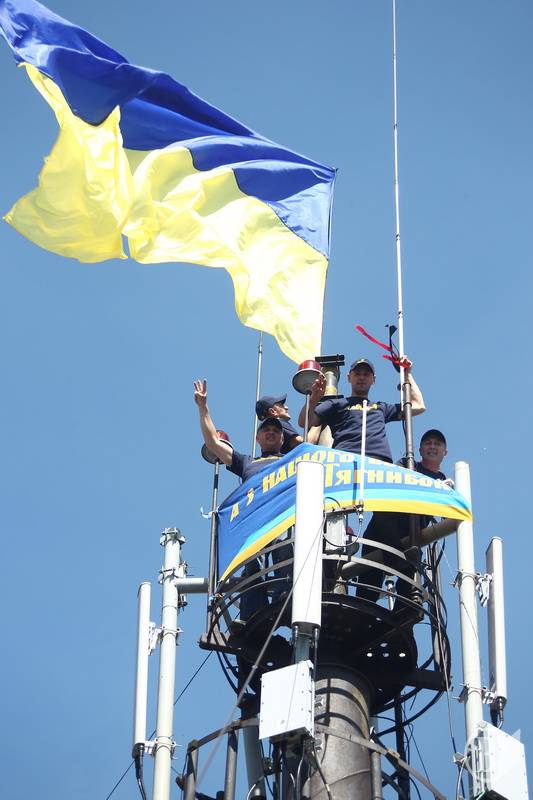 Сегодня фотожурналист и фотохудожник Виктор Кошмал стал свидетелем того, как в небе над городом, на одной из наивысших его точек затрепетал в порывах теплого летнего ветра флаг УКРАИНЫ и прозвучало трехкратное СЛАВА УКРАИНЕ!