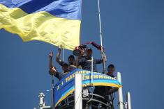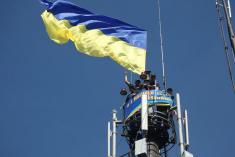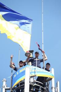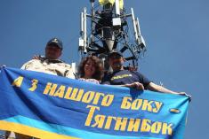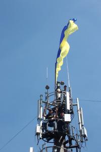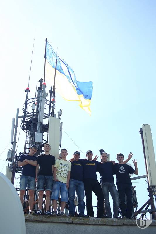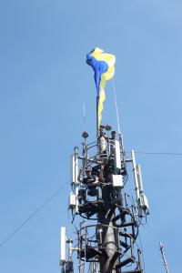 Теперь мы все каждый день сможем видеть и гордиться красивым стягом на высокой мачте гостиницы «ГРАДЕЦКИЙ», который закрепили представители Черниговской команды Всеукраинского объединения «Свобода».