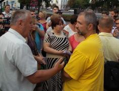Цікавий погляд колег , яі подають чітку хроногію подій цієї акції на захист вкладників "Демарку" 12 серпня у сквері імені Попудренка.