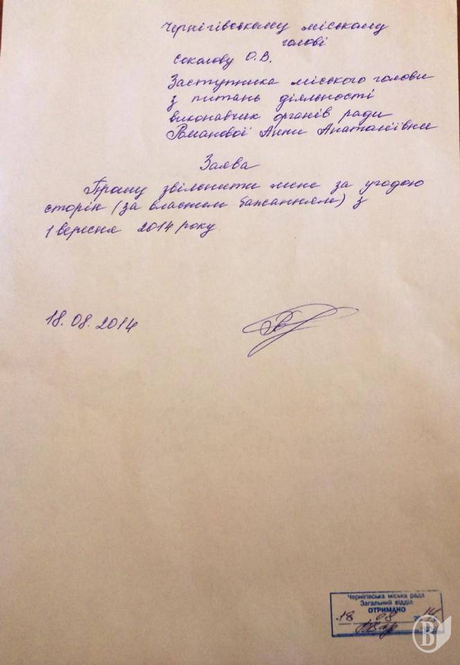 Заступник Чернігівського міського голови Анна Романова написала сьогодні заяву про звільнення.