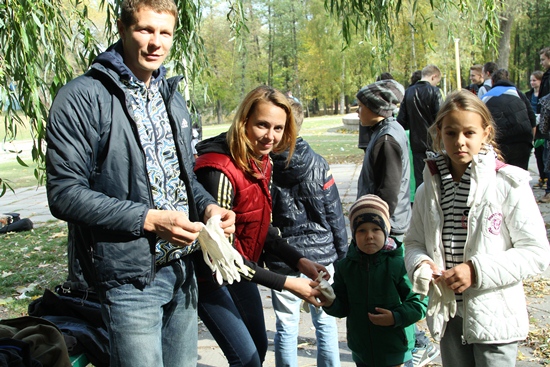 До дванадцятої години біля фонтану, запланованого місця зустрічі, зібралися близько 100 небайдужих до чистоти довкілля людей. Переважно, це були студенти й молоді сім’ї. До роботи з прибирання долучилося й сімейство Дериземлі – Андрій, дружина Наталія, донька Тетяна й найменшенький Ярослав.