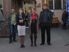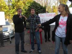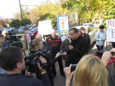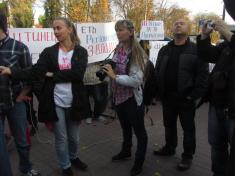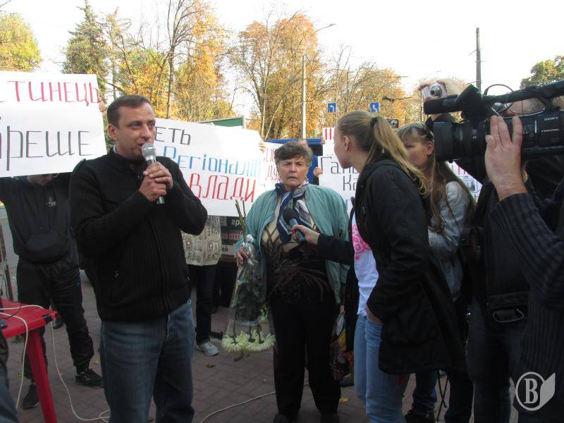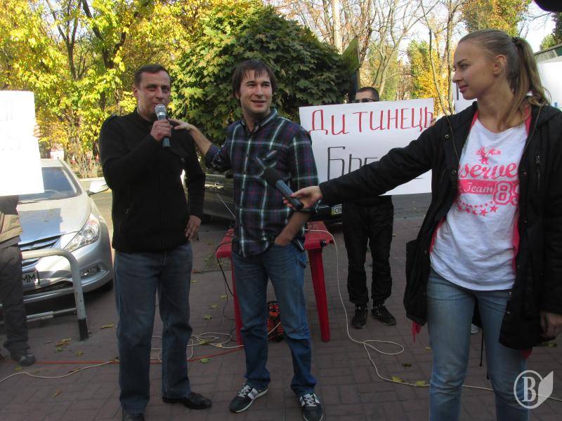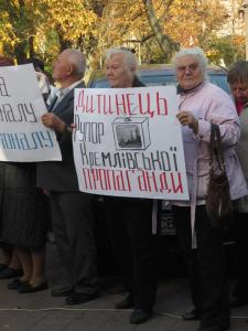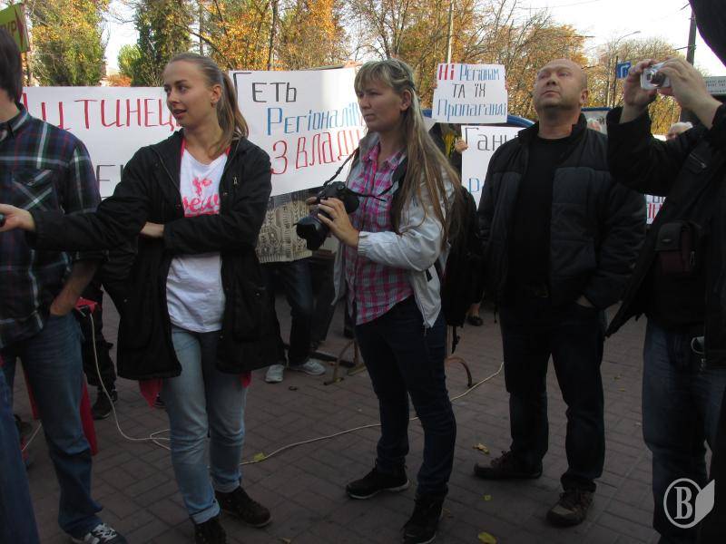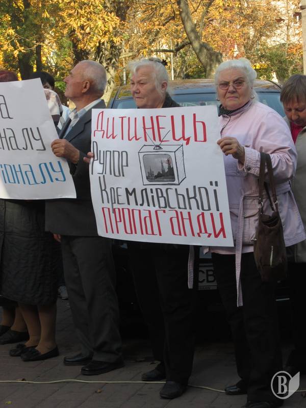 Разом з десятком своїх прибічників, озброївшись транспарантами на кшталт "Дитинець - рупор кремлівської пропаганди" демонстранти хотіли висловити своє "фе" редакційній політиці каналу.