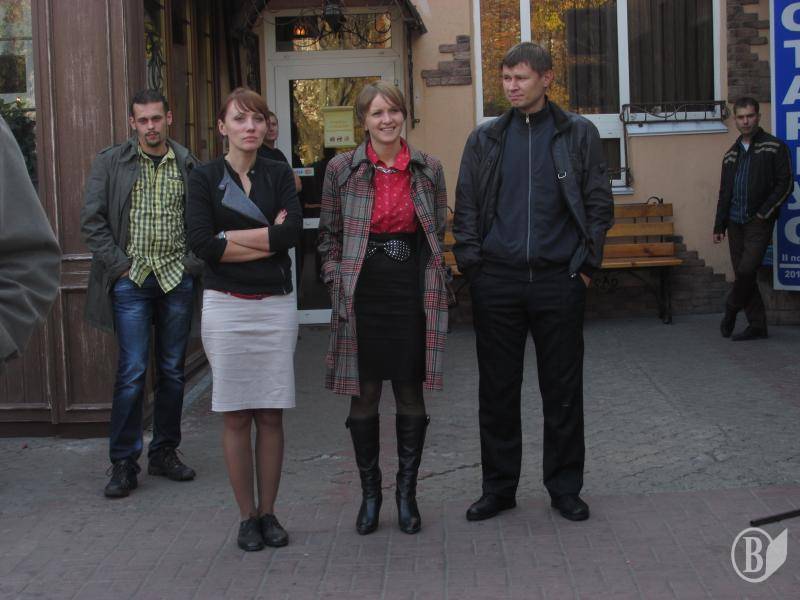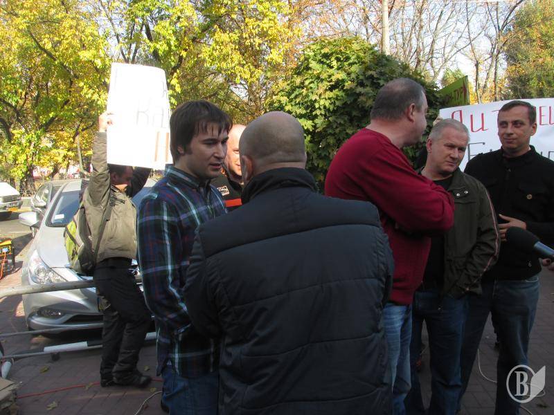 Працівники телеканалу спостерігали за дійством із посмішкою. А от директор телеканалу Олександр Ломако ледь не побився зі своїм давнім знайомим Бондарєвим, з яким вони "у 2004 році наклейки разом клеїли".